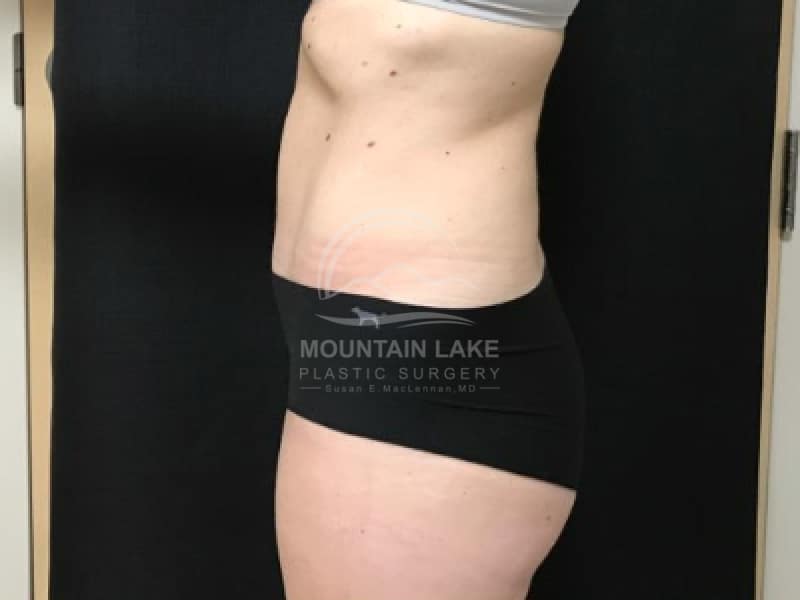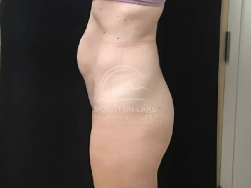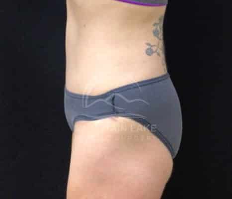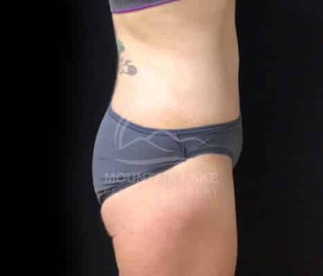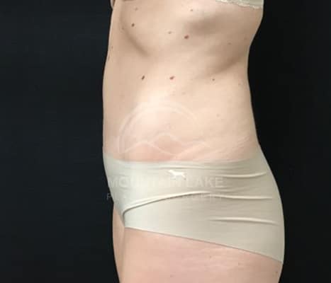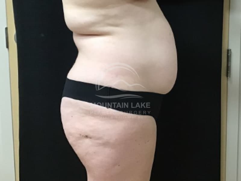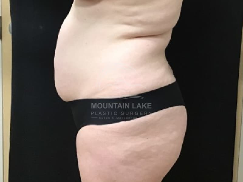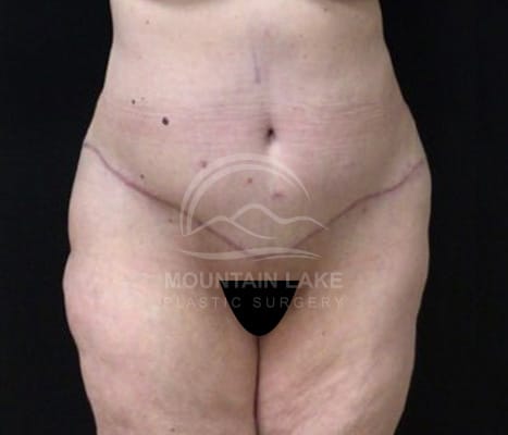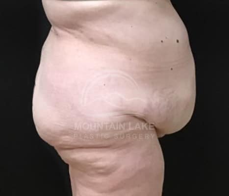 This patient was unhappy with her abdomen and hip area. She was a perfect candidate for a circumferential bodylift. The scar goes all the way around, but she was ecstatic with her improved shape.