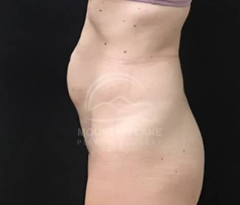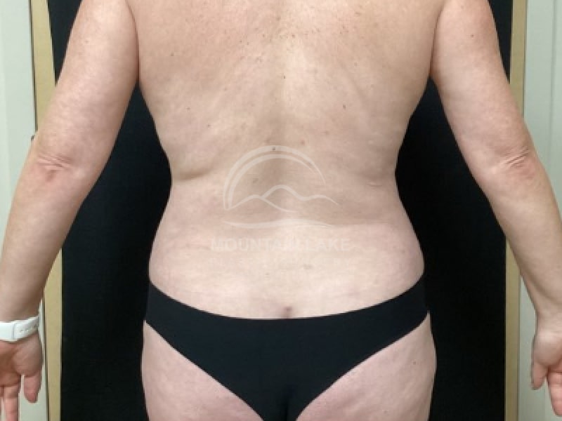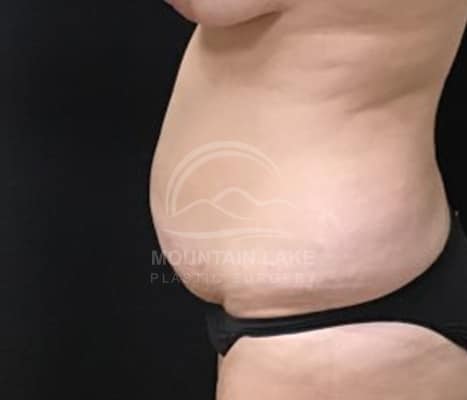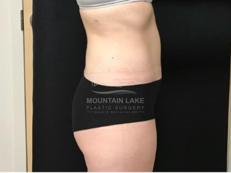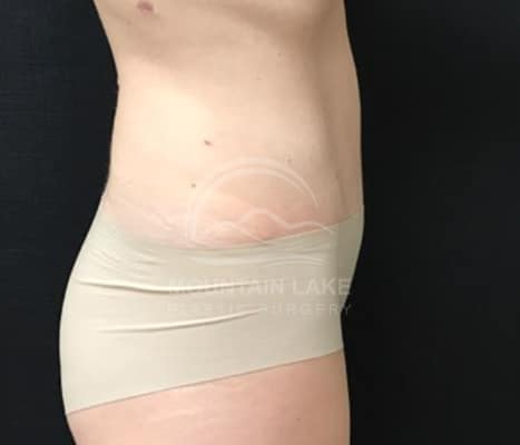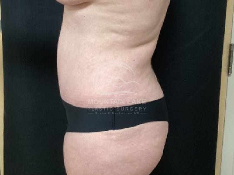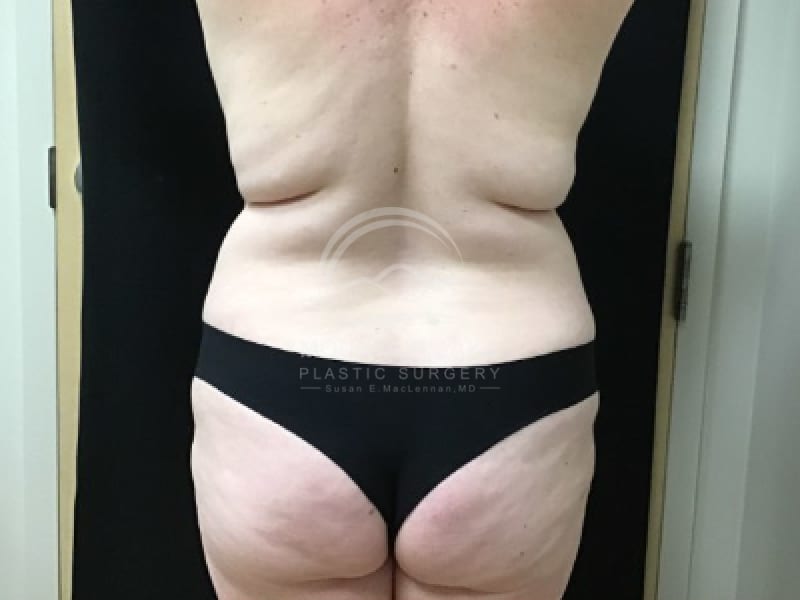 This 45-year-old woman had an abdominoplasty and liposuction of her back and flank area.