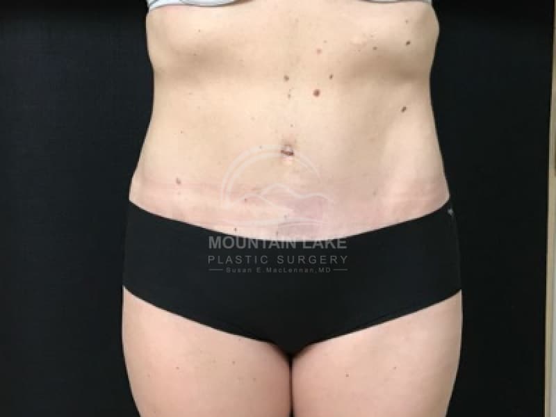 This patient had drain-free abdominoplasty to improve the shape of her abdomen after several babies.